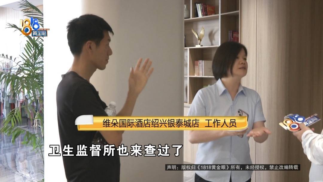 维朵国际酒店绍兴银泰城店 工作人员:我要跟老板汇报,到时候怎么样一个(处理),因为我们认为这个事情已经好了的,因为他已经打过12345(热线)。