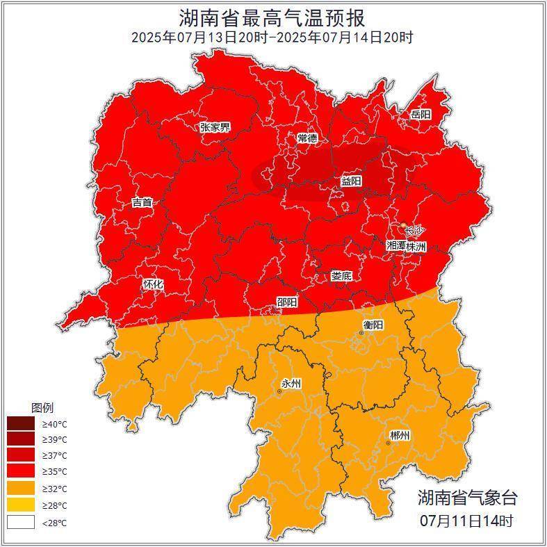 湖南省气象台预计,今晚至7月13日湘南部分地区仍有较强降雨,并伴有雷暴大风等强对流天气,14日开始高温再度发展。